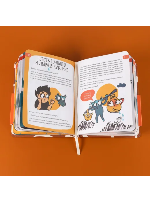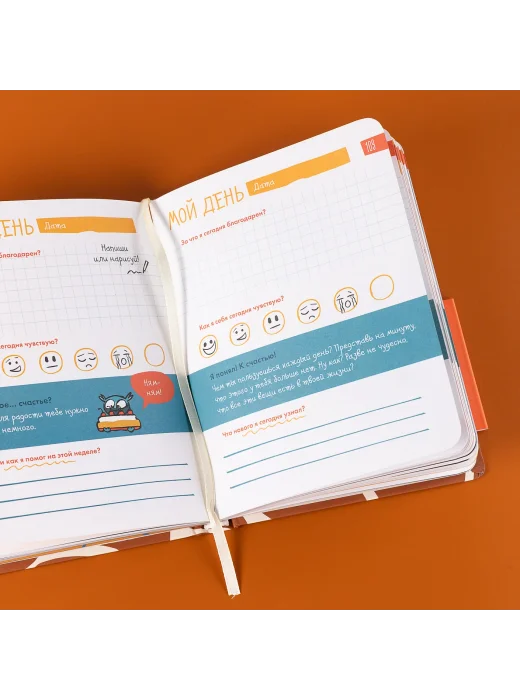 Ежедневник учитывает особенности возрастной психологии детей, поэтому информация подается в игровом формате: заполнение дневниковых записей чередуется с рисованием, ответами на вопросы, интересными фактами и полезной информацией из области психологии. Чтобы ребенку было легче воспринимать материал, на протяжении всего ежедневника его будут сопровождать два героя: мальчик Паоло и его воображаемый друг, проказник Минути.