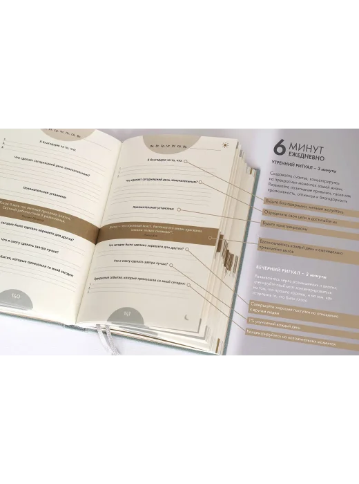 Счастье не является результатом везения или случайного стечения обстоятельств. Стать счастливым помогают правильные установки и образ мыслей. 3 минуты утром и 3 минуты вечером — столько времени займет выработка полезных привычек, которые сделают вашу жизнь осознаннее, гармоничнее, а значит — счастливее.