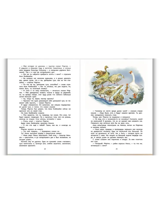 Непоседливый и ленивый мальчик Нильс Хольгерсон однажды был жестоко наказан за свои шалости: лесной гном заколдовал его, и Нильс превратился в крошечного человечка. А вместе с тем вдруг стал понимать язык птиц и зверей, которых так часто обижал раньше. Вместе со стаей диких гусей Нильс отправляется в далёкую Лапландию, преодолевая опасности, встречая новых друзей и учась доброте, смелости и ответственности. Но заслужит ли он прощение лесного гнома, сможет ли снова стать обычным мальчиком? Написанная больше столетия назад, книга Сельмы Лагерлёф остаётся одной из самых любимых волшебных историй в детской литературе. На русский язык она была впервые переведена ещё в начале XX века, вскоре после того, как была опубликована в Швеции. В настоящем издании представлен наиболее популярный перевод-пересказ, подготовленный замечательными переводчицами и первыми редакторами легендарного Детгиза Александрой Любарской и Зоей Задунайской. Стихи в повести-сказке написаны С. Я. Маршаком. Книгу неоднократно экранизировали, детям хорошо известен созданный по ней мультфильм. Входит в рекомендательные списки для чтения в начальной школе.
