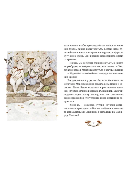В Клеверовой долине все готовятся к зиме: впадают в спячку, вяжут шарфы и варежки, мастерят новогодние подарки. Как там поживает семейство Лапин? Загляните в гости и проведайте маленького кролика Лапина, его родителей и друзей. Вам будут рады. Новые приключения, новые рецепты от мамы Лапин, новая зима, о которой рассказали автор Юлия Симбирская и художник Маша Судовых. Вместе с Лапиным вам предстоит проведать спящего слона, устроить метельный пикник, научиться кататься на коньках задом наперёд и, конечно, нарядить самую красивую ёлку.