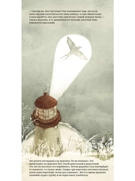Это луч света, который укажет Лео и его дедушке путь через далёкие моря и поможет отыскать тех, кто потерялся, кто каждую ночь ждёт чего-то хорошего. Дождавшись, они заснут с улыбкой на губах.