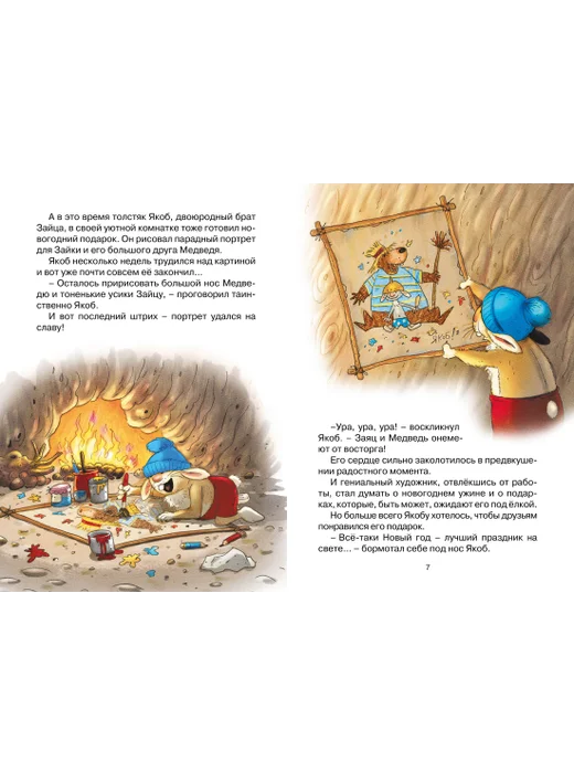 Заяц и Медведь — лучшие друзья. Они живут в необыкновенном месте — Волшебном лесу. Каждый день их ждут новые приключения, иногда опасные, но всегда захватывающие. Автор и художник Валько записал и проиллюстрировал удивительные истории о Зайце и Медведе. Так появились сказки Волшебного леса. Зайчик Якоб с нетерпением ждёт Новый год. Для своих друзей он подготовил самые лучшие подарки. Но происходит ужасное: снежная лавина накрывает его домик. Зверята стараются подбодрить и развеселить Якоба, но всё безуспешно. Неужели даже новогодние чудеса не заставят улыбнуться Якоба?