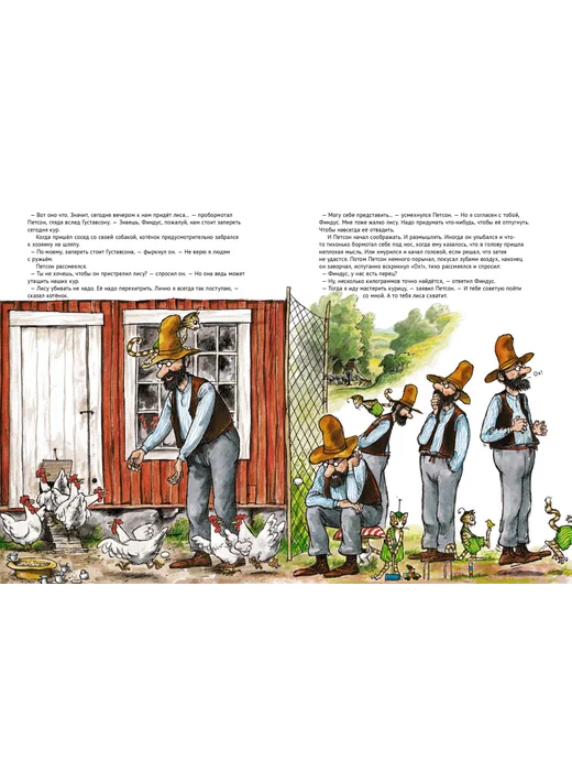 Однажды к Петсону и Финдусу зашел их сосед Густавсон, который сказал, что в округе появилась лиса, ворующая кур. Но Финдус против охоты на лис, лису надо перехитрить, считает он. Поэтому вместе с Петсоном они придумывают хитроумный способ напугать лису, чтобы ей больше было неповадно наведываться в курятники. Друзья приготовили для лисы настоящее светопредставление: взрывы петард и фейерверков, чучело курицы, наполенной перцем и даже настоящее привидение! И не только отвадили лису от своего курятника, но и навсегда отучили Густавсона от охоты на лис. Взрывы петард и летающие привидения — это настоящий хит и блокбастер во вселенной Петсона и Финдуса. Хитроумные изобретения Петсона и Финдуса так и манят изобрести что-нибудь подобное. Книга понравится тем, кто, как и автор, считает, что охота с ружьем на диких животных — это плохо.