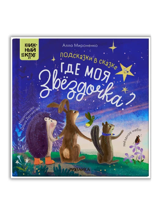 Книга «Подсказки в сказке. Где моя звездочка?» серии «Книжный клуб. Почитаем вместе?» — это трогательная сказка о дружбе и мечтах, дополненная научными фактами о космосе и звездном небе и подробными иллюстрациями. Однажды вечером ежик Плюх сидел на крылечке своего дома и смотрел на звезды. Вскоре к нему в гости пришли друзья: бурундук Желудь и заяц Прыг-Скок. Вместе они стали рассуждать о том, какие бывают планеты и созвездия, что такое метеориты и почему во время звездопада загадывают желания. Приглашаем отыскать на страницах книги ответы на эти интересные вопросы вместе с героями.