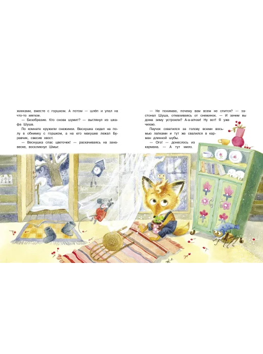Лисенок Веснушка еще никогда не видел зиму и не встречал Новый год. От своего друга Волчонка он узнал, что все зверюшки готовят для Деда Мороза сюрпризы. Что же придумать лисенку? Ведь он даже не знает кто это такой — Дед Мороз! И вот в одно прекрасное утро в домике Веснушки появился мышонок Шмыг. Он подсказал лисенку замечательную идею — подарить Дедушке то, чего он никогда не видел: цветок! Ведь зимой снег укрывает землю белым пушистым покрывалом, так что не остается и травинки. Скорее за дело, ведь Новый год уже совсем близко! Получится ли у друзей удивить Деда Мороза?
