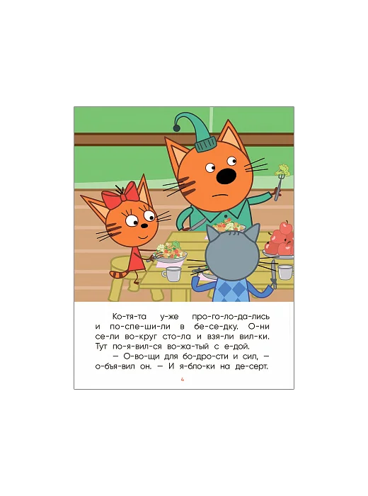 Лесные котики (Три кота. Читаю по слогам), книжка в мягкой обложке Что делать, если ребенок учится читать, а все сказки и стихи уже зачитаны до дыр? На помощь придет книга «Лесные котики» из серии «Три кота. Читаю по слогам» — история по мотивам любимого мультфильма. Слова, разделенные на фонетические слоги, крупный шрифт, понятные тексты и яркие иллюстрации — все в этой книге предусмотрено для того, чтобы читать по слогам ребенку было легко и интересно. Удобный формат книг позволит наслаждаться чтением не только дома, но и на прогулке, в пути или в очереди. Из книги «Лесные котики» ребенок узнает, как котята отправились в лесной лагерь и научились быть самостоятельными. Учимся читать легко и бегло вместе с героями любимого мультсериала!