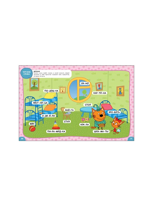 Книга «Три кота. Учусь читать. От слога к тексту» — настоящая находка для родителей, которые хотят в игровой форме научить читать своего ребенка. Книга построена по принципу от простого к сложному: от самых азов – алфавита – к чтению сначала слогов, затем слов, словосочетаний, предложений и, наконец, небольших текстов про котят и их приключения. Параллельно малыш повторит все ключевые темы, с которыми он встречается в повседневной жизни, что также послужит расширению его словарного запаса. Для удобства чтения все слова разделены на слоги, везде проставлены ударения. И, конечно же, учиться читать гораздо веселее вместе с любимыми героями — Коржиком, Карамелькой и Компотом!