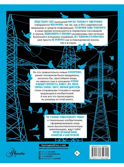 Человек не был бы тем, кем он является сегодня, без множества гениальных изобретений, превративших нашу цивилизацию в венец мироздания на Земле. Что же дало нам возможность не застрять навсегда в каменном веке? Это самые разные приборы и механизмы — сложные и простые, ставшие со временем незаменимыми предметами обихода, лекарственные препараты, избавившие население от страшных эпидемий, а также технологичные транспортные средства, способные быстро доставить в любую точку планеты людей и грузы, и многое-многое другое. Все это было придумано, разработано и сконструировано выдающимися умами, открытия которых порой опережали свое время и приближали расцвет человечества. В этой книге рассказывается о том, какие ключевые изобретения ускорили научно-технический прогресс и позволили людям пройти путь от первой колесной повозки до космического корабля. Описания главных достижений, интересные и порой удивительные факты из истории их создания сопровождаются познавательными иллюстрациями и в совокупности дают представление о том, что подтолкнуло выдающихся ученых и естествоиспытателей к гениальным озарениям. Для юных изобретателей и конструкторов, которые захотят создать свое собственное изобретение, кардинально новое и невероятно полезное для всех людей на Земле, 150 страниц увлекательного чтения могут стать надежной отправной точкой. Для среднего и старшего школьного возраста.