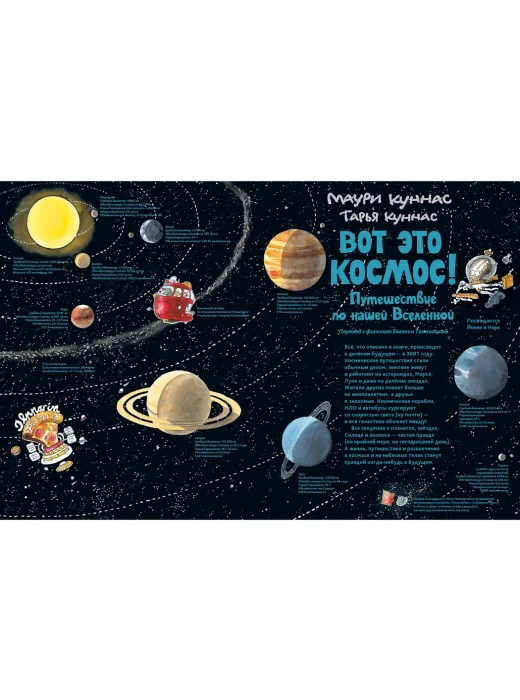 Все, что описано в этой книге, происходит в далеком будущем - в 3001 году. Космические путешествия стали обычным делом, земляне живут и работают на астероидах, Марсе, Луне и даже на далеких звездах. Жители других планет больше не инопланетяне, а друзья и знакомые. Космические корабли, НЛО и автобусы курсируют со скоростью света (ну почти) - и вся галактика обожает пиццу! Занимайте места в школьном автобусе! Маури Куннас проведет увлекательную экскурсию по Солнечной системе. Незабываемые впечатления гарантированы!