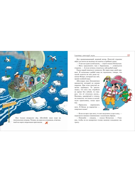 Где-то на севере есть удивительная деревушка Котьма. Удивительна она тем, что живут в ней одни только коты! Впрочем, есть среди них и самые настоящие морские волки, которых так и тянет к приключениям. Где они только не побывали: и на кита охотились, и к Северному полюсу плавали, а теперь отправляются на далекий остров в поисках сокровищ и спасают мир от крыс-пиратов.