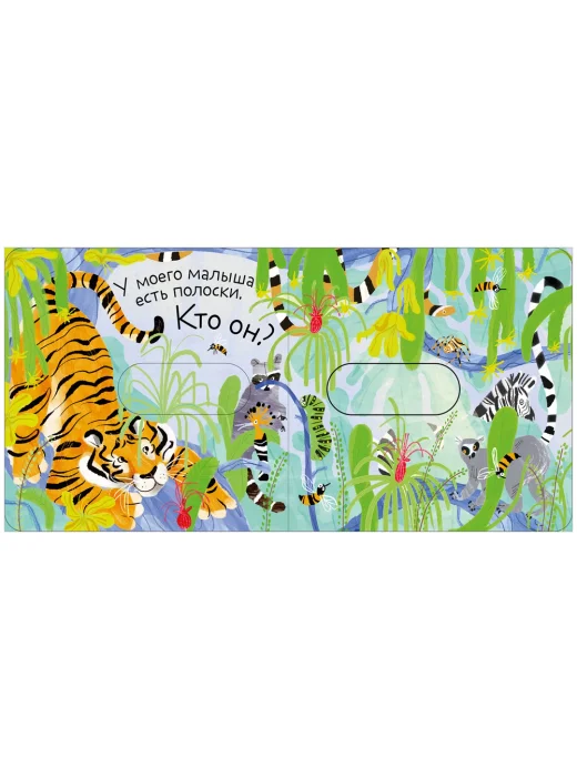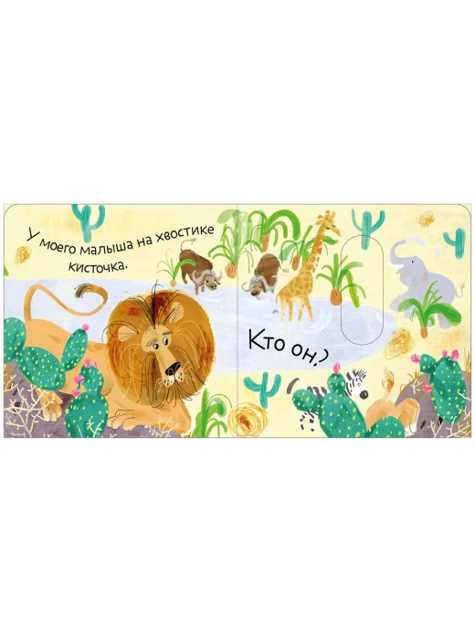 Книжка «Угадай, кто мой малыш?» поможет ребенку узнать новые слова и развить мелкую моторику с веселой игрой «ку-ку, кто там?».
