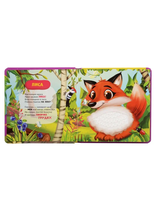 Эта серия развивающих книжек-игрушек очень полезна детским пальчикам! Малыш погладит шёрстку на грудке у лисички, потрогает щетинку на боку у кабанчика, проведёт по блестящей чешуе рыбки, и тем самым получит первые важные ощущения и эмоции. А добрые и весёлые стихи известного детского поэта Юлии Весовой познакомят его с животными леса и реки.