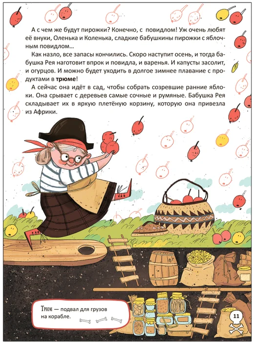 Книга Бабушка-пират серии «Книжный клуб. Мама, почитай!» — это веселая история о том, как бабушка ждет своих внуков в гости. Только вот в прошлом бабушка была настоящим пиратом! А старые привычки, как известно, почти не забываются. Поэтому проведенный с бабушкой-пиратом день становится настоящим приключением! Ведь от нее можно узнать так много всего интересного, например: выучить необычные словечки, научиться готовить макароны по-флотски и узнать разные нюансы морской жизни. Осталось поднять паруса, открыть книгу — и полный вперед!