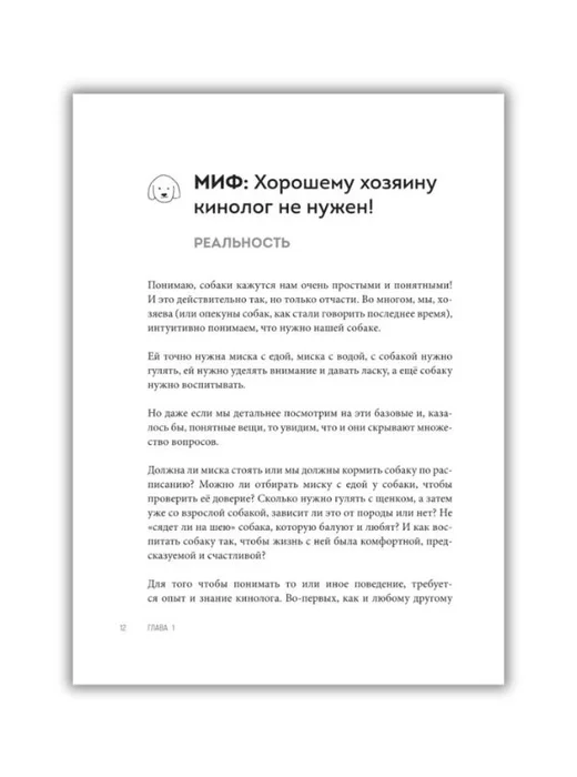 Видели забавные ролики про собак, которые улыбаются изо всех сил? Или замечали это у своего питомца? Кажется, собака очень рада и желает вам доброго дня! На самом деле… ей страшно и некомфортно. Шокированы? То ли еще будет! Если вы хотите научиться жить со своей собакой по-настоящему счастливо, без криков, принуждения и наказаний, приготовьтесь встретиться с десятками укоренившихся убеждений, которые испортили отношения многим поколениям хозяев и питомцев. Елизавета Дмитриева — специалист по поведению собак и современный кинолог, практикующий гуманный подход к воспитанию собак. Из ее книги вы узнаете ответы на вопросы: - Нужно ли показывать собаке, кто в доме главный? - Почему на самом деле собака погрызла ваш ботинок и есть ли тут месть? - Правда ли, что маленькие собаки — глупые, а дворняжки — самые благодарные? - Нормально ли, что собака делает противные вам вещи: лазает в помойку, нюхает метки или совершает с вашей ногой что-то неприличное? - Нужен ли вообще кинолог и зоопсихолог — или это выдумки, чтобы пошатнуть уверенность хозяина? Каждая глава книги — случай из личной практики, результат профессиональных исследований и честная беседа без секретов, как на самом деле устроена собачьи психика и поведение. Научитесь понимать свою собаку — и увидите, как радостно можно жить с питомцем без насилия, в любви и гармонии!