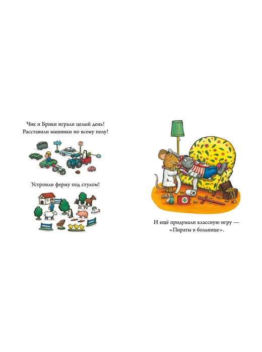 Брики приехала к Чику в гости с ночёвкой. Друзья играли целый день! Расставили машинки по всему полу, устроили ферму под стулом, и ещё придумали классную игру — «Пираты в больнице». Всё было прекрасно до тех пор, пока не пришло время спать. Брики вдруг поняла, что забыла взять свою любимую игрушку — Лягушатника!