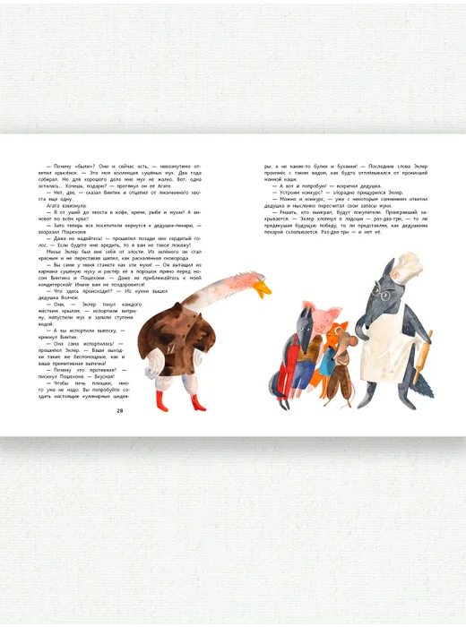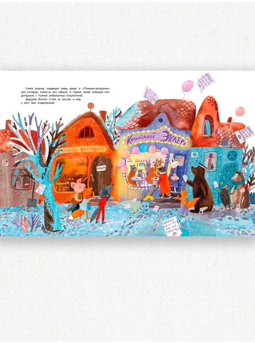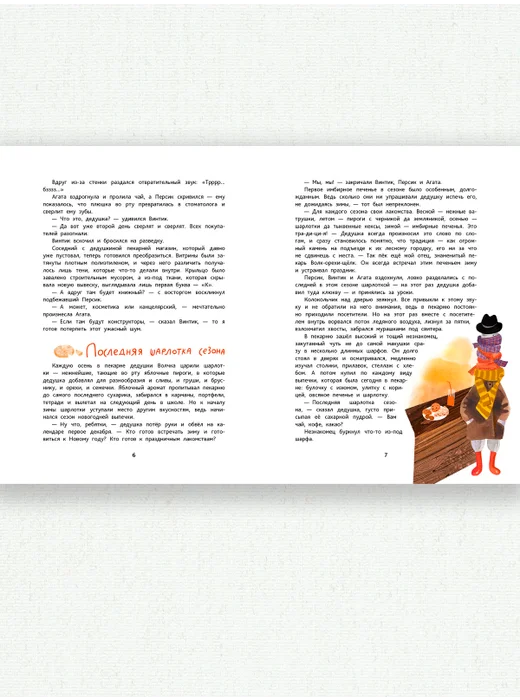 Хорошо, когда в городке есть маленькая уютная пекарня “Плюшки-ватрушки”, где восхитительно пахнет свежей выпечкой и с утра до вечера хлопочет дедушка Волчок! Но как быть, если накануне Нового года, когда все ожидают традиционного праздника и вкуснейших новогодних сладостей Волчка, по соседству со старенькой пекарней открывается суперсовременная “Кондитерская месье Эклера”, а ее коварный хозяин начинает строить козни дедушке-пекарю? Смогут ли волчонок Винтик, лисичка Агата, поросенок Персик спасти пекарню от закрытия и выиграть кулинарный конкурс? И можно ли вместо козней и споров протянуть лапу дружбы? Открывайте самую вкусную историю из всех новогодних и запаситесь имбирем, корицей и шоколадом, ведь вам непременно захочется испечь сладости к празднику по фирменным рецептам дедушки Волчка!