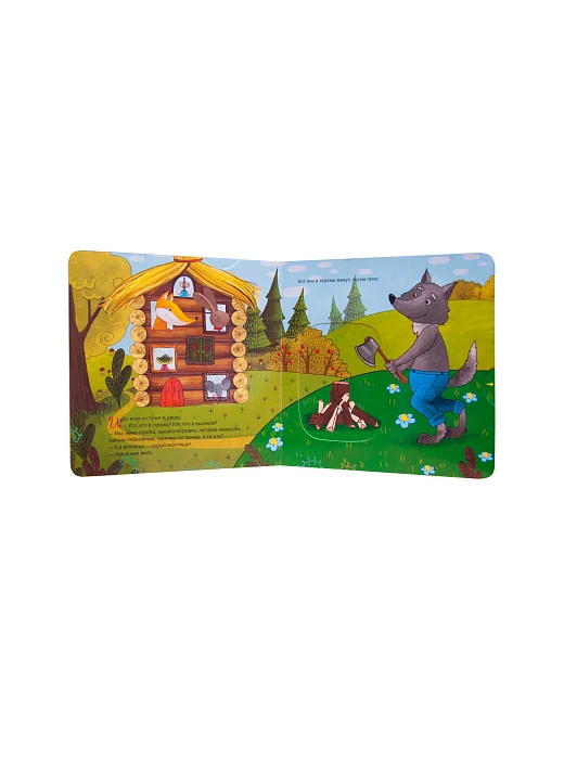 Внутри маленького читателя ждет множество сюрпризов! Потянув за клапаны и приведя в движение подвижные элементы, малыш сможет открыть или закрыть окошки в теремке, поможет Лисе испечь пирог, Волку сварить обед и многое другое.