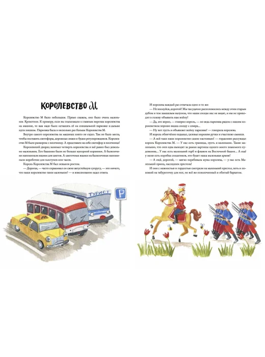 Книга Анны Игнатовой — настоящая находка для тех, кто любит разглядывать то, что не очень хорошо видно. Вас ждёт вереница историй из жизни небольшого Королевства М. Скорее даже крошечного, причём настолько, что его границы едва выходят за рамки картины, в королевском бассейне помещается всего одна золотая рыбка, а принца можно рассмотреть лишь в лупу. Но этот маленький мальчик очень любит большие приключения.