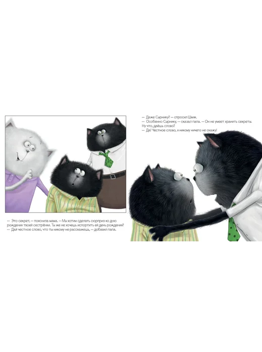 Совершенно случайно котенок Шмяк узнал, что мама и папа готовят для его младшей сестренки сюрприз на день рождения. Они решили всей семьей съездить в самый лучший парк аттракционов «Кошачье царство». Родители попросили котенка сохранить это в секрете и не рассказывать никому, даже своему лучшему другу Сырнику. Шмяк и не думал, что хранить тайны так сложно! Каждый день он был сам не свой, Сырник даже начал подозревать, что со Шмяком что-то не так. Но когда Шмяк увидел, как его сестренка радуется, он понял, что не зря хранил тайну.