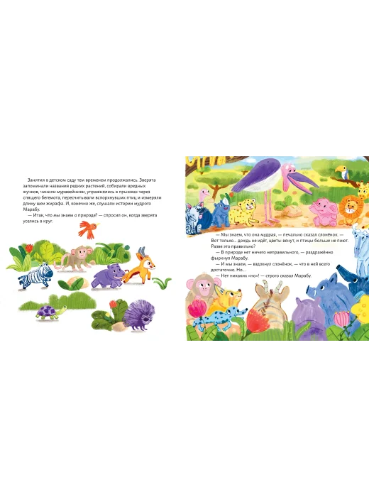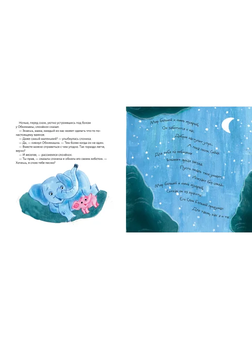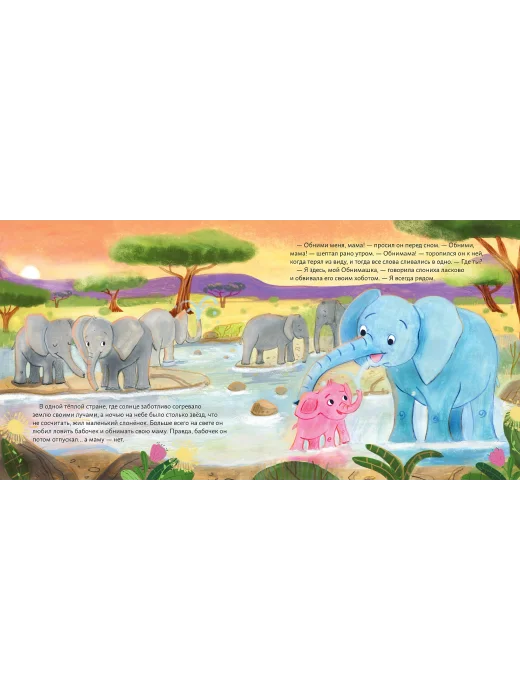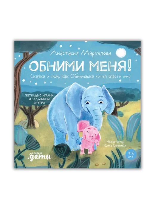 Все прекрасно в мире маленького слонёнка Обнимашки: он ходит в детский сад, где готовится к школе, мама рассказывает ему сказки перед сном, а на любимом пруду всегда весело квакает семейство лягушек. Но однажды незаметно подкралась беда: в саванне началась засуха... Безжалостные солнечные лучи практически высушили любимый пруд Обнимашки, и даже лягушки куда-то разбежались. Как же спасти любимый водоём? И можно ли вообще что-то сделать, если ты маленький, а против тебя, кажется, весь большой мир? Книга о приключениях слонёнка Обнимашки расскажет маленьким читателям, как важно не унывать, верить в свои силы, доверять большому миру, и покажет, что сообща решать проблемы легче, чем одному. А задания-активити в конце книги помогут малышу весело и с пользой провести время вместе с любимым Обнимашкой!