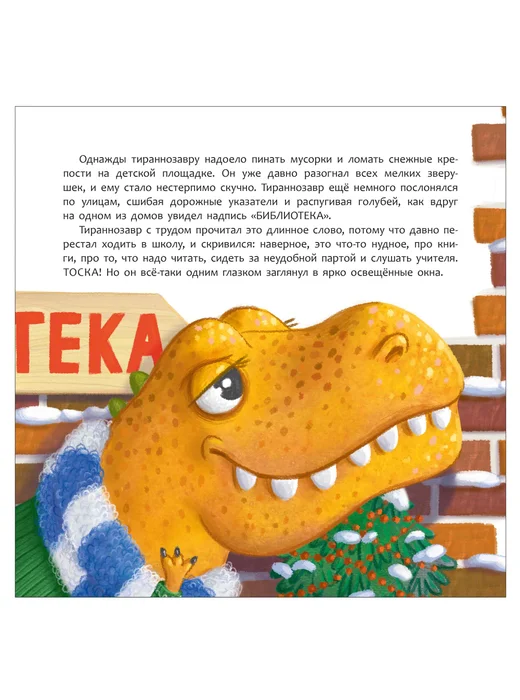 Тираннозавр Тирентий держал в страхе всех окрестных зверят. Но однажды он совершенно случайно оказался в библиотеке. Сможет ли мудрая Овечка библиотекарь перевоспитать хулигана и научить всех зверят дружить? Добрая история о том, как важно уметь находить ключики к сердцу даже самых сложных детей и как многое в их взаимоотношениях зависит от взрослых. А еще – о том, что в современных библиотеках есть не только книжки, но и много всего интересного!