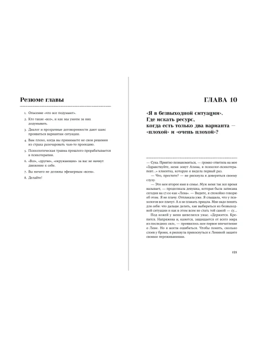 Книга посвящена отношениям человека с собой и другими и освещает самые распространенные проблемы, с которыми люди приходит к психологу: неуверенность, неспособность отпустить прошлое, неумение собраться с силами, ревность, вина, зависть, безысходность, сожаление об упущенных возможностях, потребность в любви, раздражение на весь мир, горе потери…