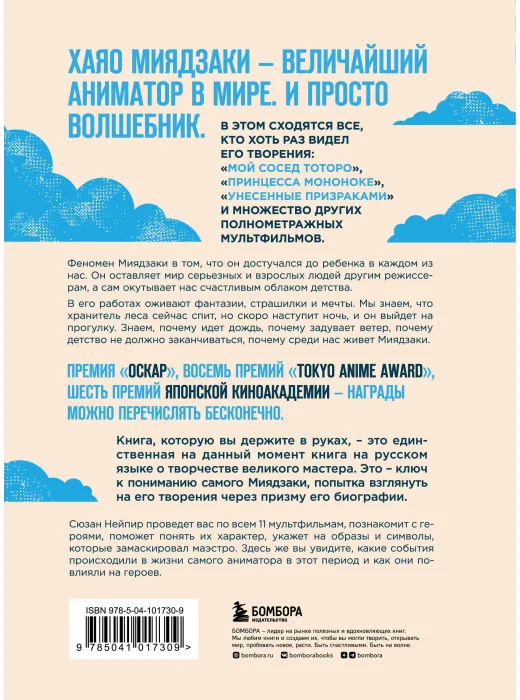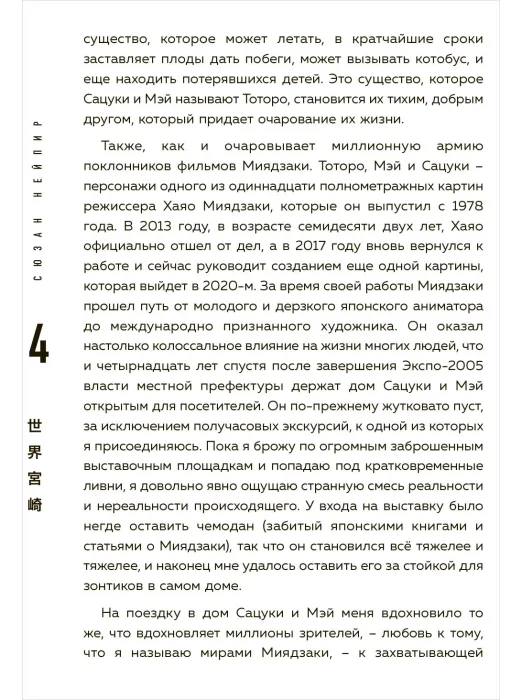 Самый милый котобус на свете, чудесная рефлексирующая ведьмочка Кики, лесные духи, обманчивый уют и тревожная красота Замка — все это волшебная вселенная, созданная маэстро анимации Хаяо Миядзаки. Миллионы поклонников по всему миру, множество премий, абсолютное признание гения — у него есть абсолютно всё. Книга Сьюзан Найпир приоткрывает дверь во внутренний мир самого автора. Она покажет, что противоречивое чувство вины, удивления и ужаса — именно эти чувства двигали самого доброго мультипликатора современности ко всему, что у него есть сейчас. Фишки книги: - единственная книга о творчестве Миядзаки; - цветные вкладки с любимыми кадрами внутри; - история всех 11 мультфильмов аниматора; - полный анализ роли его творчества в культуре; - стильный макет и плотная белая бумага внутри. Для кого эта книга: - для всех, кто хотя бы раз смотрел мультфильмы Миядзаки; - для тех, кто интересуется современной культурой; - для любителей манги и анимэ; - для тех, кто хочет окунуться в детство.
