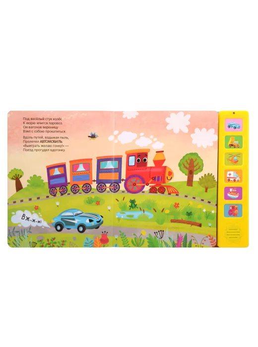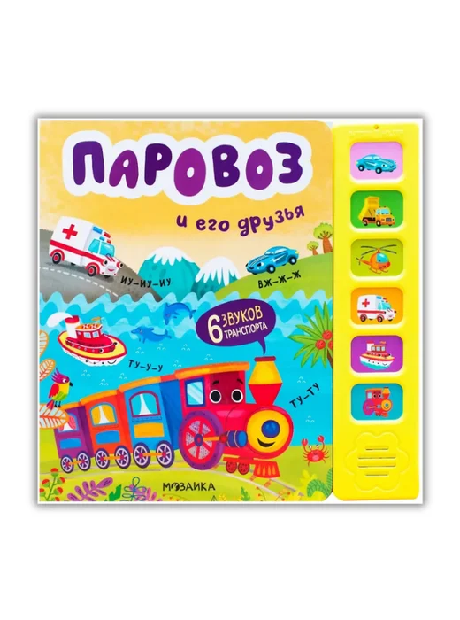Ту-ту! Вж-ж-ж! Дети обожают звуковые книги — ведь так интересно нажимать на кнопки и слушать разные звуки. Книга «Паровоз и его друзья» из серии «Звуковые книги» с красочными иллюстрациями Анны Гузь и добрыми забавными стихами расскажет о приключениях паровозика, который мчится к морю. В пути вместе с веселым паровозом малыш повстречает его друзей: гоночную машину, пароход, машину скорой помощи, самосвал и вертолет. В книге 6 звуковых кнопок, нажимая на которые, ребенок услышит гудок парохода, сирену машины скорой помощи и другие звуки транспорта.